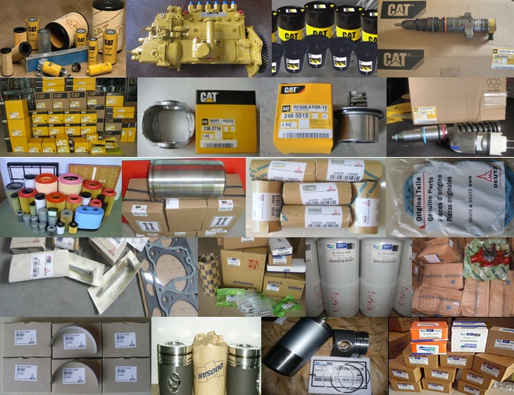 典型的發動機配件有:缸體,上修理包,下修理包,缸套,缸套縫隙密封圈,活塞冷卻噴嘴,凸輪軸承,凸輪軸承,手孔蓋襯墊,曲軸,主軸承組,曲軸齒輪鍵,曲軸前齒輪,曲軸后齒輪,活塞,活塞環,活塞銷,活塞銷擋圈,連桿瓦,連桿襯套,連桿,發電機,發電機皮帶,發電機皮帶輪,右凸輪軸,左凸輪軸,右凸輪軸齒輪,左凸輪軸齒輪,凸輪軸止推軸承,凸輪軸鍵,凸輪軸后蓋墊片,凸輪軸惰輪止推軸承,凸輪軸惰輪螺栓,右凸輪軸惰齒輪總成,左凸輪軸惰齒輪總成,前齒輪室蓋襯墊,曲軸前油封,曲軸后油封,附件驅動前襯套,附件驅動軸油封,水泵驅動油封,氣缸蓋,氣缸蓋墊片,進氣門,排氣門,進氣門座圈,排氣門座圈,空氣偏澆板,氣門彈簧,氣門導管,氣門鎖夾,氣門彈簧上座,氣門彈簧下座,丁字壓板導桿,丁字壓板,丁字壓板重型螺帽,丁字壓板調整螺栓,噴油嘴銅套,缸蓋螺栓平墊片,缸蓋螺栓,從動件室襯墊,氣門推桿,噴油推桿,氣門從動桿分總成,噴油從動桿分總成,噴油從動桿分總成,滾輪鎖緊鋼絲,卡環,凸輪軸從動件凹頭,氣門滾輪銷,噴油滾輪銷,噴油滾輪,從動件滾輪,凸輪從動件定位環,搖臂室襯墊,搖臂室,搖臂室蓋,進氣搖臂,柴油發動機配件|發動機配件|發電機配件|柴油發電機組配件|康明斯發動機發電機配件|重慶康明斯發動機發電機配件|東風康明斯發動機發電機配件|珀金斯發動機發電機配件|德國曼發動機發電機配件|沃爾沃發動機發電機配件|卡特比勒發動機發電機配件|依維柯發動機發電機配件|小松發動機發電機配件|道依茨發動機發電機配件|斗山大宇發動機發電機配件|三菱發動機發電機配件|強鹿發動機發電機配件|濰柴道依茨發動機發電機配件|揚動發動機發電機配件|無錫動力發動機發電機配件|無錫斯坦發電機配件|上海馬拉松發電機配件|英格發電機配件|利萊森瑪發電機配件|法國SDMO西電發電機配件|威爾信發電機配件|斯堪尼亞發電機配件|奔馳MTU發電機配件|排氣搖臂,噴油搖臂,搖臂軸堵塞,機油冷卻器芯,水室蓋襯墊,機油冷卻器襯墊,油底殼襯墊,油底殼下襯墊,油底殼放油塞,吸油管襯墊,機油泵,機油泵驅動齒輪,水泵總成,水泵修理包,水泵水封,水泵軸,水泵葉輪 ,水泵油封,水泵墊片,止推片,水泵軸承,鍵槽密封圈,燃油泵驅動軸,燃油泵襯墊,附件驅動皮帶輪,中冷器修理包,中冷器芯,進氣管墊,進氣接頭管墊,進氣接頭矩形密封圈,中冷器蓋襯墊,節溫器,水濾器座,水濾切斷閥,曲軸后油封,曲軸后油封(帶襯套),噴油器總成,油嘴O型圈,PT油嘴修理包,油杯,PT泵,大流量執行器(常閉),電磁切斷閥,起動馬達,磁力開關,海水泵,軸套,擋套,水封,油封,熱交換器,油壓表,油溫表,水溫表,電壓表,轉速表,溫度傳感器。溫度報警器,油壓傳感器,油壓報警器,速度傳感器,調速控制器,風扇驅動及風扇組件,