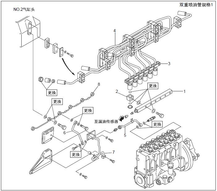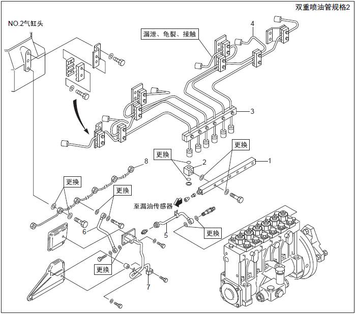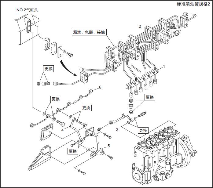 三菱S6R發(fā)動機燃油噴油管、燃油溢流管的拆卸,檢測