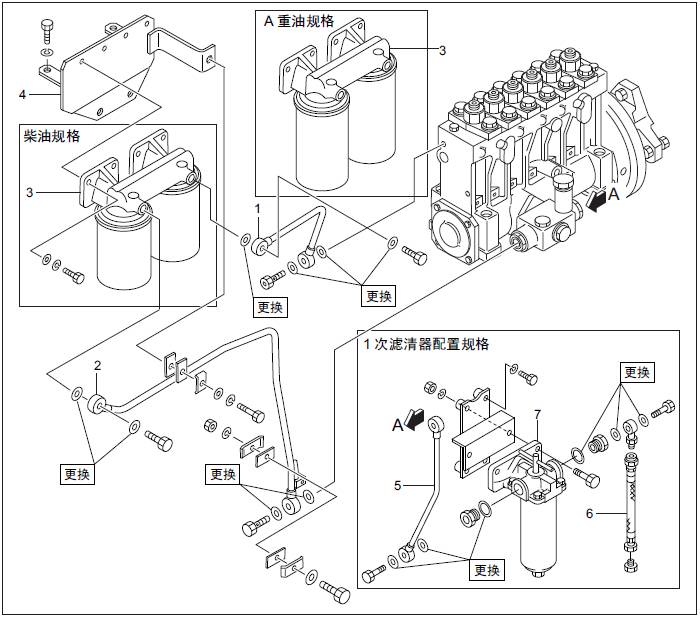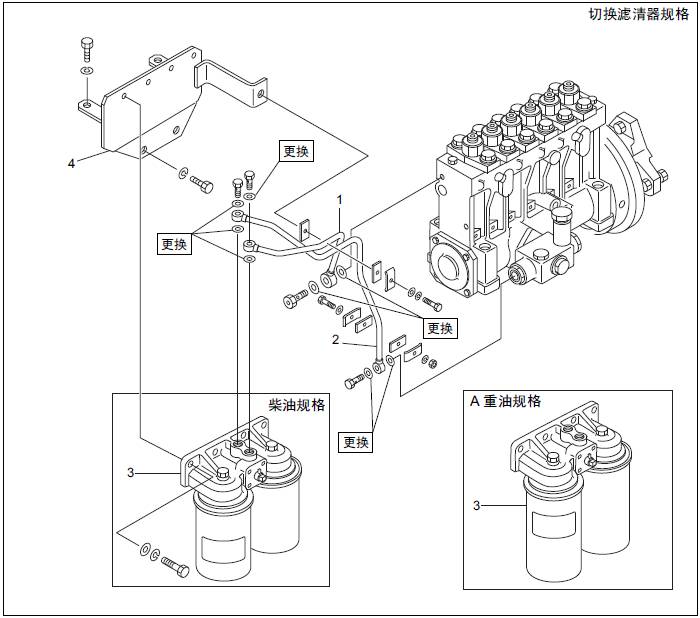 三菱S6R發(fā)動機燃油濾清器、燃油管的拆卸,檢測