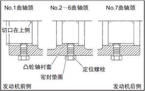 No.7 軸頸的三菱S6R柴油發動機凸輪軸襯套的定位螺孔朝向No.6 氣缸側安裝。