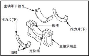 (3) 在最后端三菱S6R柴油發動機主軸承瓦端蓋的定位銷位置安裝推力片( 下)。