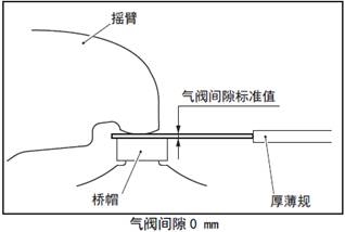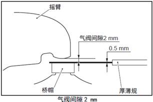 (2) 在搖臂和橋帽之間插入和三菱S6R柴油發(fā)動機氣閥門間隙標(biāo)準(zhǔn)值相同厚度的厚薄規(guī)。( 三菱S6R柴油發(fā)動機氣閥門間隙0 mm)