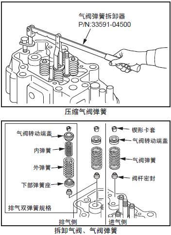 1.11 拆卸氣門、三菱S12柴油發(fā)動機(jī)氣門彈簧
