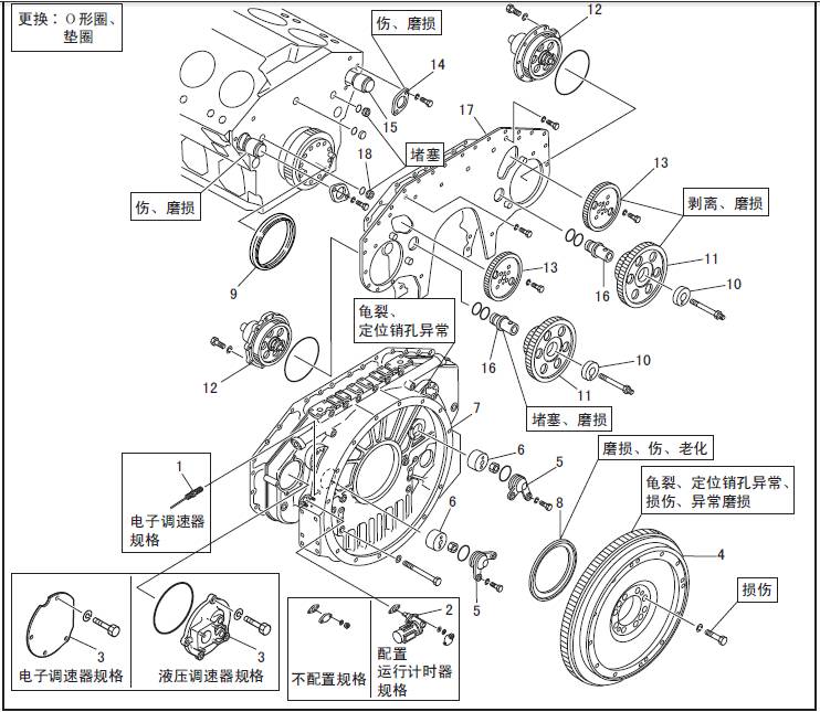3 三菱S12柴油發(fā)動機(jī)調(diào)速器驅(qū)動器(液壓三菱S12柴油發(fā)動機(jī)調(diào)速器規(guī)格)( 解體、檢修和組裝參照「三菱S12柴油發(fā)動機(jī)燃油系統(tǒng)」項(xiàng))蓋板( 電子三菱S12柴油發(fā)動機(jī)調(diào)速器規(guī)格)
