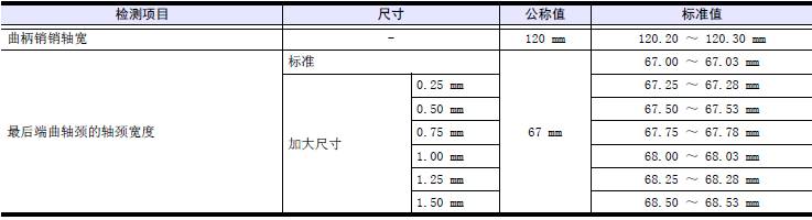 超過極限值時,使用加厚尺寸的軸瓦,按照和加厚尺寸軸瓦的規格研磨三菱S12柴油發動機曲軸。使用1.00 mm 規格的加厚尺寸主軸瓦仍然超出極限值時,更換新的三菱S12柴油發動機曲軸。