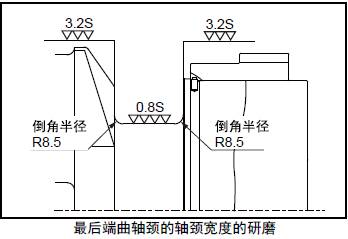 注意研磨時不要改變軸頸端部倒角的半徑。對于表面硬度明顯降低的三菱S12柴油發動機曲軸,要再進行熱處理并進行磁性探傷檢查。研磨加工后的表面精度均應滿足標準值要求。