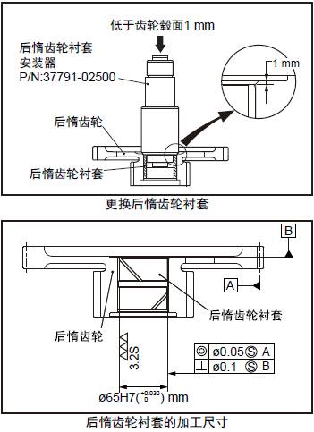 注: 前三菱R16柴油發動機惰齒輪襯套是以半成品狀態提供的,因此壓入后必須進行鉸孔加工。