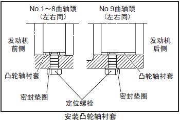(2) 三菱R16柴油發動機三菱R16柴油發動機缸體的定位螺栓孔和三菱R16柴油發動機凸輪軸襯套的定位螺栓孔對準后,安裝三菱R16柴油發動機凸輪軸襯套,用定位螺栓固定。