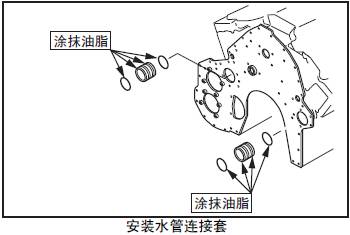 (2) 安裝三菱R16柴油發動機三菱R16柴油發動機缸體和齒輪箱的水管連接套,注意不要損傷O形圈。