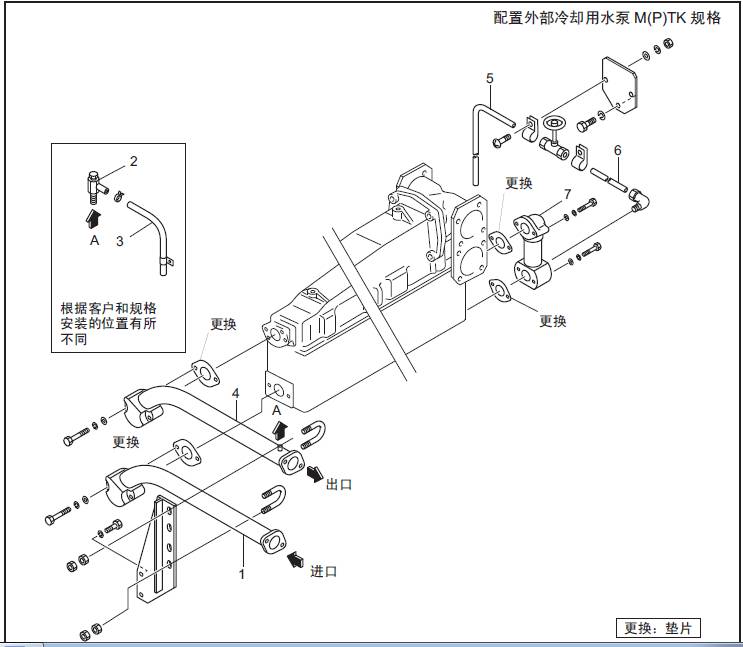 3 三菱S16柴油機旁通水管