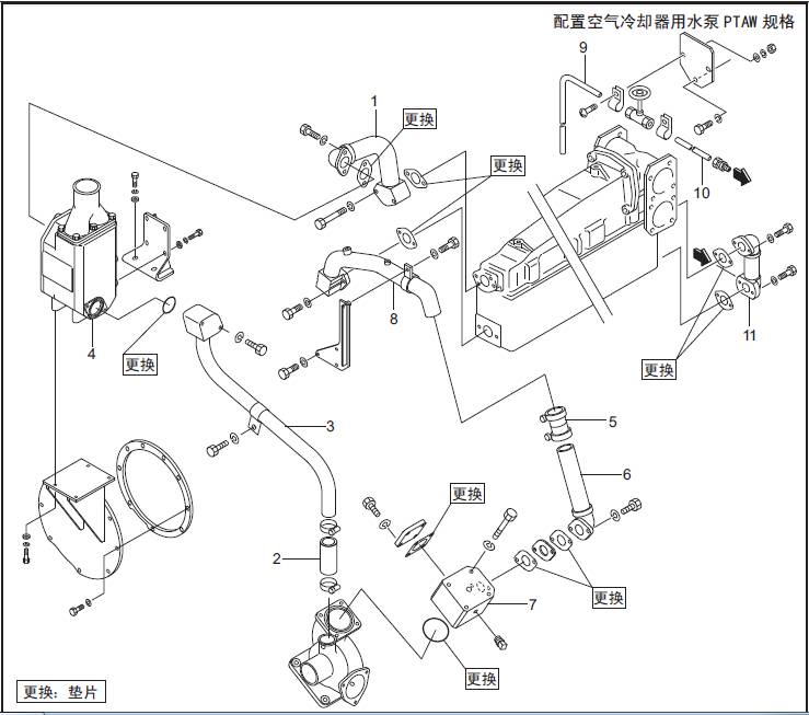 2.9 三菱S16柴油機空氣冷卻器水泵的組裝