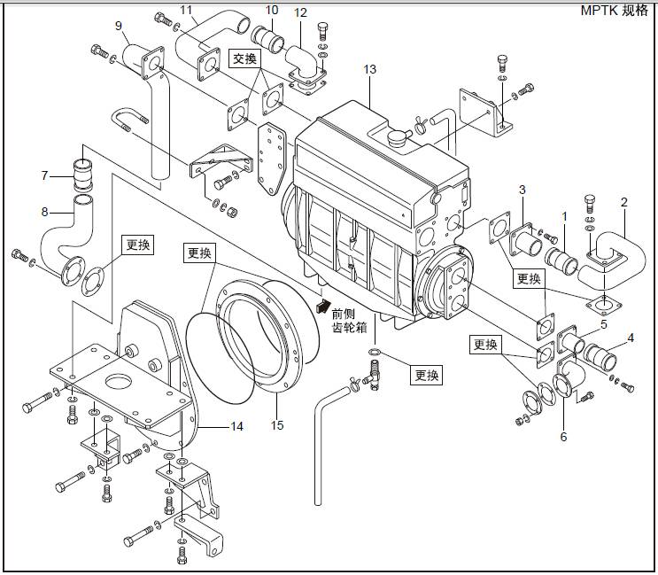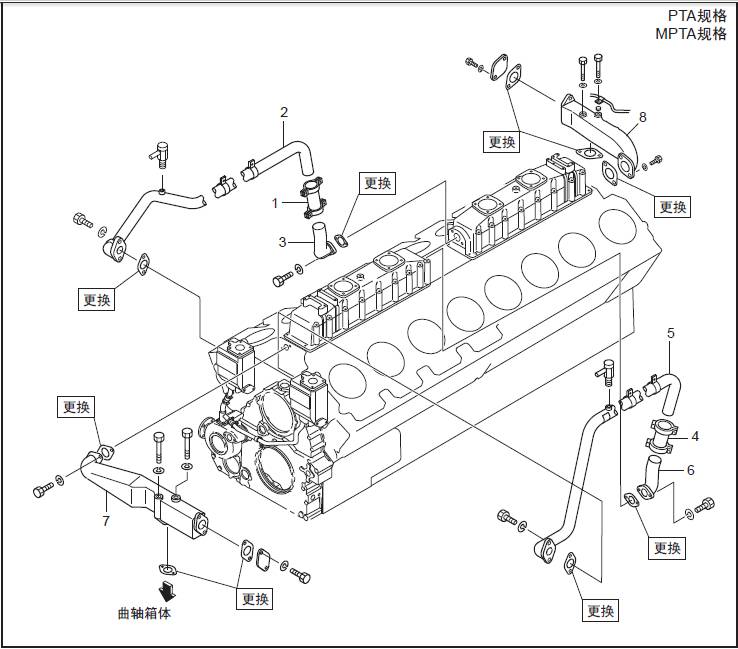 三菱S16柴油機冷卻水管的拆卸,檢修拆卸順序