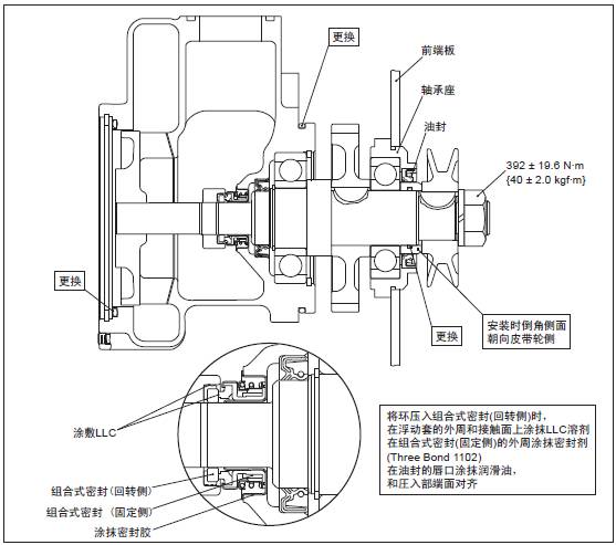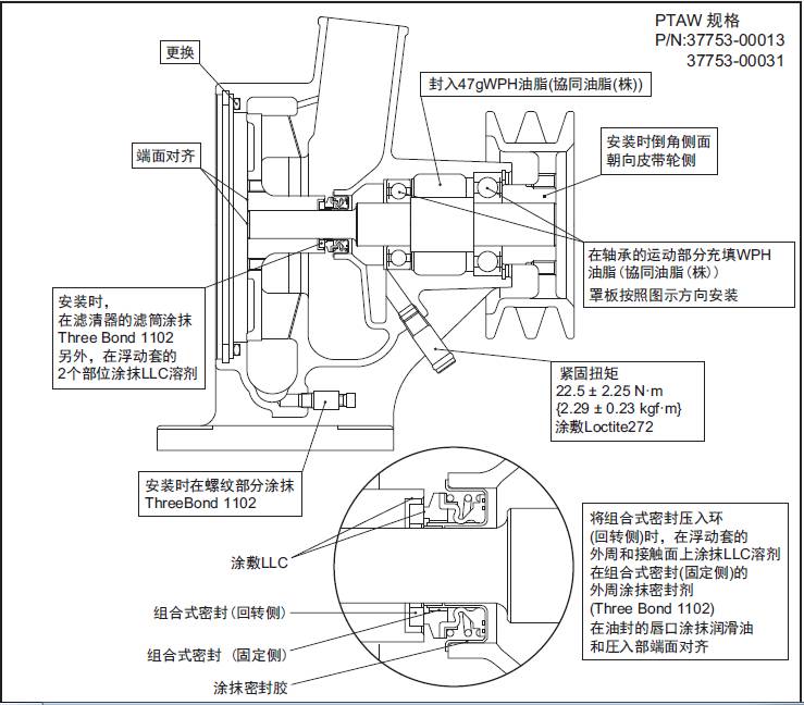 (1) 座和泵體的安裝面涂抹密封劑(Three Bond 1101)。