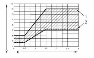 3. 擰緊調節螺栓 (1)。 擰緊安裝螺栓 (2)。 有關正確