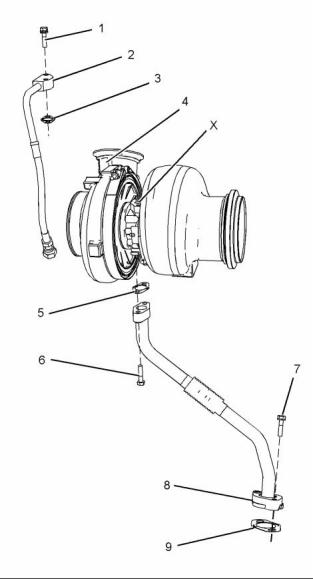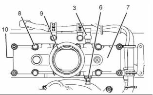 9. Install bolts (1) and (3). Tighten the bolts to a