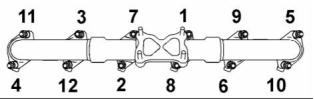 8. Install bolts (12) and (13). Tighten the bolts to a
