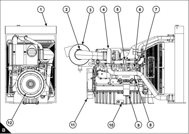 The terms "left side" and "right side" apply when the engine is seen from the rear end, the flywheel end.