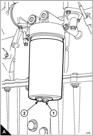 3 Remove the drain plug (A2) from the base of the oil filter housing (A1) and drain the oil into a suitable