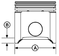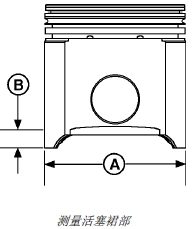 1. 在與活塞銷孔成 90°,距活塞底部 (B) 28 毫米(1.1英寸)處測(cè)量活塞裙部 (A)。記錄測(cè)量結(jié)果。
