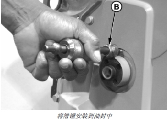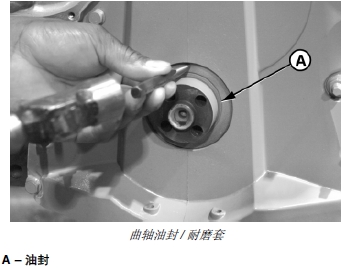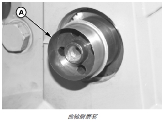 2. 在曲軸軸頭上安裝耐磨套 (A),耐磨套的凸輪緣應(yīng)面向曲軸。