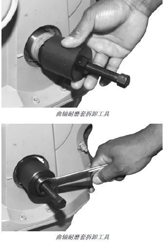 注意: 如果拆卸過(guò)程中耐磨套的凸輪緣開(kāi)始滾動(dòng),應(yīng)卸下拉拔器總成,使用更寬爪的夾頭卡住耐磨套。
