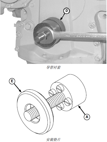 6 導(dǎo)管襯套 (E) 裝在安裝器和油封上。