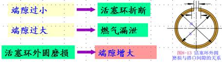 端隙:活塞環處于工作狀態時的開口大小。是活塞環工作時的熱脹間隙。防止受熱而卡死。