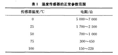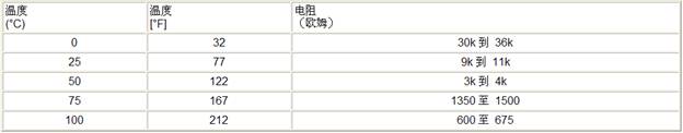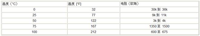 傳感器的電阻值隨溫度變化。如果傳感器的功能正常,觀察的讀數應與下表數據進行對比。