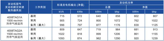 功率:1500rev/min時,839kWm(4008TAG1A)