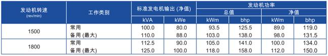 上表所有額定功率數據均為ISO/TR 14396/IS0 8528條件下操作時數據。
