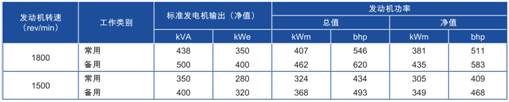 功率:于1500 rev/min時,349 kWm