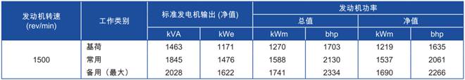 功率:于1200rev/min時,1263 kWm