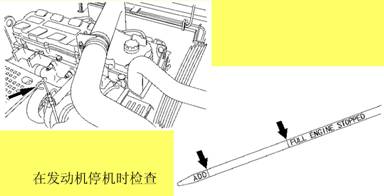 •4、運行發動機直到冷卻液到達正常溫度,溫度調節器開啟,冷卻液面穩定,打開水箱蓋檢查冷卻液面,添加冷卻液使其達到要求高度;