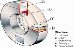 燃燒的動力可引起曲軸扭轉,此為扭力震動.可導致曲軸變形,所以需限制此扭力震動至.