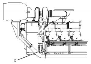 在4012-61A TRG發(fā)動(dòng)機(jī)上為測(cè)量進(jìn)氣歧管空氣壓力,特工具(A)連接至位置(X)。承載操作發(fā)動(dòng)機(jī)。