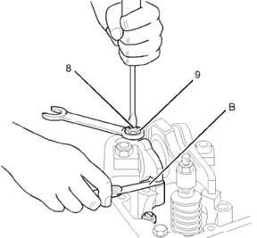 a松開(kāi)進(jìn)氣門搖臂上的鎖緊螺母(9)。
