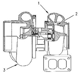 1檢查渦輪有無(wú)異物造成的損壞。如有損壞應(yīng)確定異物的來(lái)源。更換渦輪增壓器(3)。如果沒(méi)有損壞請(qǐng)進(jìn)行步驟2。