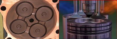 康明斯Cummins QSK23發動機每缸有兩個進氣門,兩個排氣門.進氣門頭比排氣門頭(直徑)大 2 mm.排氣門表面使用硬合金以降低磨損。