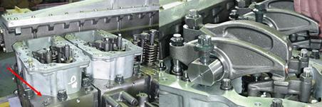 要保證康明斯Cummins QSK23發動機搖臂軸的正常潤滑, 搖臂軸有鉚釘的一側必須朝向發動機前端并且螺栓孔大的一 面朝下。