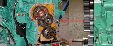 康明斯Cummins QSK23發動機后齒輪系驅動凸輪軸。 一個復合惰齒輪提供所需的速度降。這種布置提供了更小的噪音及更精確的噴油正時控制。