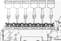 安裝活塞與連桿。參考步驟 001-054。安裝活塞冷卻噴嘴。參考步驟 001-046。