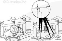 檢查缸套法蘭下有無裂紋。使用磁性檢查法或染料檢查法同樣可以探測到裂紋。參考《M11 系列發動機大修手冊》(公告號 3666075)。