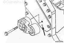 注: 如果發動機裝備有自動皮帶張緊器,參考步驟 013-021 以拆卸充電機皮帶。