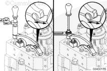 確保零件已對準,并且擰緊調整螺釘,將機油擠出氣門和康明斯噴油器機構。