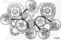 三個惰輪、兩個凸輪軸齒輪和曲軸齒輪都帶有裝配時用于對正的標記。未正確對準會造成發動機嚴重損壞。