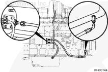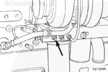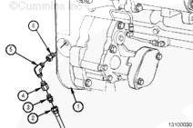 康明斯N14 壓力管安裝,主要位置,從齒輪殼機(jī)油壓力端口拆下壓力端口螺塞。