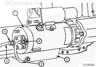 用清潔的康明斯發(fā)動(dòng)機(jī)機(jī)油加注到吸油管中 (3)。將吸油管安裝到油底殼 (2) 與 PRELUB™ 起動(dòng)馬達(dá) (1) 上的輸入端口 (6) 之間。將 PRELUB™ 軟管 (4) 安裝到機(jī)油濾清器座與 PRELUB™ 起動(dòng)馬達(dá) (1) 上的壓力端口 (5) 之間。