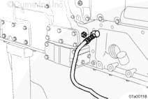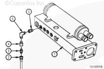 康明斯QSK19 壓力軟管和單向閥安裝,找到并拆下機(jī)油泵法蘭底部的螺塞。用一個(gè) 5/8-12 直螺紋 O 形圈 x 1/2 美國(guó)國(guó)家標(biāo)準(zhǔn)錐形管螺紋 (NPT) 適配器更換。