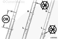 檢查康明斯機(jī)油標(biāo)尺上的機(jī)油油位。其必須加注到 L(低油位)和 H(高油位)標(biāo)記之間。
