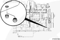 康明斯V28 壓力開關(guān)安裝,如圖所示,在發(fā)動(dòng)機(jī)機(jī)油濾清器側(cè)安裝壓力開關(guān)。